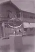 Reportage från Sandhamn under sandhamnsregattan 1941. En man och en kvinna står framför sitt solur och sitt hus.