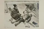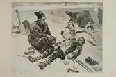 "Efter stormen." En mor sitter intill sin döde son. Foto av oljemålning av Johan Tirén från 1885.