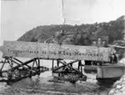 Mårten och Eka Klas. Stenblock upphissat med hjälp av block och talja.