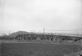 Stora Fiskaregränd 5, 3 och 1 västerut mot Mosebacke Torg. Navigationsskolan (före 1907) med byggnadsställning. Nuv. Fiskargatan 3 och 1, kv. Mosebacke.