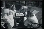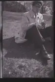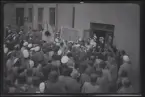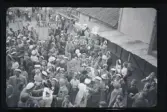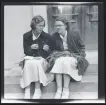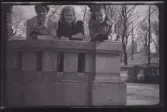 Människor sitter på trappen framför Universitetshuset i Uppsala.