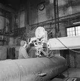 Verkstadsinteriör Eldfast inbyggnad över svetsmaskin