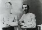 Tatueringsbilder. Matrosen Karl Wängren. Höger under arm: övre partiet stucket i köpenhamn 1917, skeppet stucket i Calcutta 1921 till ett pris av 3,5 ruppes.
