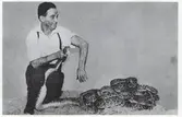 "Havaiian Joe" från Hilo. Tatuerad med ormbilder i ansiktet och på armarna.
