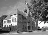 Nya Teatern i Linköping, sedd från korsningen av Vasavägen och Platensgatan. Byggnaden som uppfördes efter ritningar av Axel Anderberg, försågs med både centralvärme och elektrisk belysning.