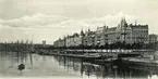 Skioptikonbild med motiv från Allmänna Konst- och Industriutställningen i Stockholm 1897. Norrbro. Vy från Stockholms Slott.