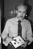 "Louis Schmitt i Kållered visar några av stenarna från fyndplatsen. Det framgår troligen inte efter tidningstrycket men MP-fotografen kan intyga att de visar tydliga stänk av "rent guld"." År 1985. För mer information om bilden se under tilläggsinformation.