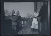 Tjänstefolket tar hand om makarna Nordenfalks barnbarn på besöket på Färna Bruk, 1928