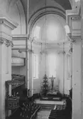 Heliga Trefaldighetskyrkan, interiör. Pastor Eriksson, från Missionskyrkan, håller i Gudstjänsten. Församlingen står upp.