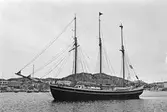 Vykort med tremastad skonare i Älvsborgsfjorden.