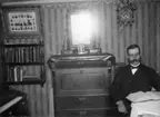Enligt senare noteringar: "Folkskollärare Palmgren i sin bostad." Fotot är taget 1919-12-12. (BJ) Litt.: Forshult, Erland, "Folkskoleväsendet i Foss", 1942.