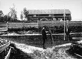 "Markmyra", mätning i vägkorsningen. Albert och Sylvia Jonssons ladugård i bakgrunden.