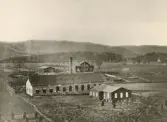 "Den 29 maj år 1877 bifälla stadsfullmäktige i Borås en ansökan från handlan - den Aug. Strömqvist och ing. Claes Brinell att få anläggande av gjuteri och mekanisk verkstad 'uppföra i rak linje med fabrikör Andersons nya spinneri en gråstensbyggnad, 135 fot lång och 40 fot bred.' Denna ursprungliga verkstadsbyggnad finnes allt fortfarande kvar och ingår i den nuvarande verkstadskomplexet. Hösten år 1879 såldes verkstadsrörelsen till ingenjör Herman Gustavson vilken upptog tillverkning av vävstolar samt diverse handelsgjutgods. Bilden visar verkstaden år 1882." Borås Mekaniska Verkstad.