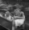 Barn vaggar småsyskon på Bomanshyttan i Nora, 1930-tal