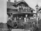 Kvinnor och pojke på uteservering, troligen på gamla Byttan i Kalmar.