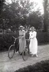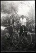 Lantgård i Viserhult, Färgsryd socken. Mangårdsbyggnaden har två skorstenar och två ingångar. Den gamla byggnaden till höger kallades Lilla Höbbaret. Framför huset står en man och två pojkar med cyklar. Vid husväggen står en cykel på lut.