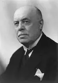 Västra Trädgårdsgatan 9, Stockholms Handelskammare. Affisch framtagen för Stockholms 700-års jubileum. Skulpturen Bågspännaren av konstnären Christian Eriksson.