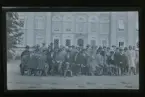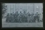 Grupporträtt av en stor samling människor framför Templarorden-byggnad. NTO logen Julita, NTO träff 1922."
