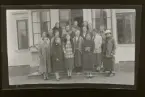 "Medborgarskolan, Fogelstad" Honorine Hermelin i främsta raden, iklädd mörk kappa med ljus pälskant.
