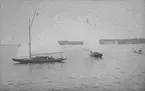 Frimärke ur Gösta Bodmans filatelistiska motivsamling, påbörjad 1950. Frimärke från Jamaica, 1891. Motiv av Utställningsbyggnad i Jamaica 1891.