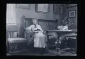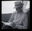 Sven Morthensen sitter och läser på balkongen till familjen Morthensens villa Solveden, Djursholm.