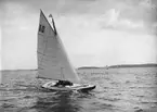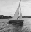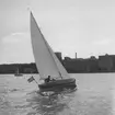 Ekolns Segelklubbs första lottbåt, sjösatt i Fyrisån, Uppsala 15 juni 1923