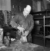 Skönbergagatan 10 i Söderköping. Från fasaden annonserar Hagman sin något dunkla affärsrörelse "Materialaffär". I staden visste man naturligtvis att det rörde sig om Gunnar Hagmans färghandel. Vid sidan av sin affärsrörelse drev han även målarverkstad lite längre ned utefter gatan.