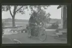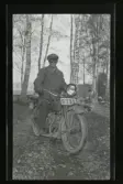 Man på moped/ motorcykel. "Karl Pettersson, Åtorp."