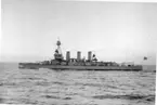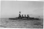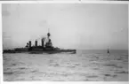 Pansarskeppet Gustaf V i juli 1944. I bakgrunden Drottning Victoria i Kustflottan.
