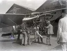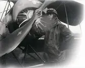 Fotografi från låda märkt Bernt Balchen. Balchen var norsk-amerikansk flygare, polarforskare och militär. Motiv av flera män som står framför flygplan.