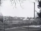 "1931. 35. Munkedals Fabrik entre vid Porten." "Från vänster baseriet (gaveln), sorteringssalarna och portvaktstugan."