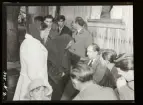 En grupp män, några samtalar, några vilar. Familjen Taikons läger i Johanneshov, södra Stockholm.