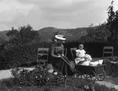 Text till bilden: "Grupp i det fria i trädgården Fossum".