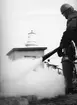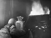 Släckning av eldsvåda under luftskyddsövning på Luthagen