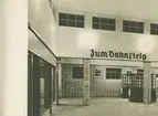 "Bahnhofsvorhalle", "S-Bahnhof, Sundgauer Strasse, Reichbahn, Berlin, Deckenplanspiegelleuchten DPL 9". Bild ur boken "Zeiss Spiegellicht System Zeiss-Wiscott in der Architektur : eine Sammlung durchgeführter Beleuchtungsanlagen". Boken gavs ut av Berlin-Zehlendorf : Zeiss Ikon A.G., Goerzwerk, 1937.