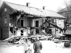 Gudsberga kloster, Husby socken. Undersökningen av Gudsberga klosterruin började vid den södra muren. På bilden antikvarie Ingrid Swartling, amanuens P. H. Rosenström och ä:s ombud C-E Eriksson.
