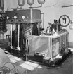 Museijärnväg Östra Södermanlands Järnväg, ÖSlJ. Skadad personvagn på spåret vid Lina Tegelbruk. Transformatorhus bakom vagnen.