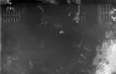 Vy över tomten till familjen Morthensens villa Solveden, Djursholm. En ung man och kvinna ligger på en filt i gräset.