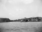Medföljande text: "Lossning av sill vid den nyanlagda lastkajen i Fjällbacka 1958".