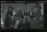Enligt senare noteringar: "Skolköksgrupp utanför Lanthushållsskolan. I gruppen sitter också rektor Ernest." (BJ)