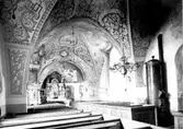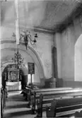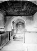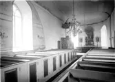Interiör, mot orgelläktaren. Kamin i förgrunden.