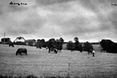 Häljesgården. Erik Gustavsson kör ogräsharv, år 1954.