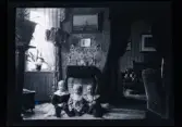 Interiörbild ifrån salongen på övre våningen i "Skräddar-Svenssons" hus omkring år 1902. Från vänster: Gustaf Svensson, Albertina Svensson (hustru till Alfred Svensson), Alfred Svenssons moder, Frida Svensson, Alfred Svensson (Skräddarmästare), John Svensson och Axel Svensson. I rummet innanför David Svensson.