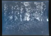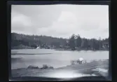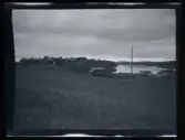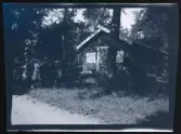 Anna-Lisa Johansson skojar med Erik framför kameran, iklädd uniform. Hon var flyglotta under kriget, därav klädseln. Hon är på besök hos sina morföräldrar Josefina och Johan-Aron i Hugalyckan.