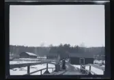 Anna-Lisa Johansson iklädd uniform hänger på ett staket med armen om en väninna klädd i hatt och kappa. Anna-Lisa var flyglotta under kriget, därav klädseln. Hon var född i Rolfstorp med hälsade ofta på hos sina morföräldrar Josefina och Johan-Aron i Hugalyckan i Veddige.