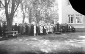 Skara Manskör. Mycket folk har samlats för att höra manskören, Valborgsmässoafton, 1949.