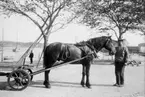 Enligt senare noteringar:"14 juni 1921. Beställare till fotografering var Johansson i Hogen, troligen Håby socken. Bilden är tagen utanför Oscar Färdigs fastighet vid Kvistrum." (BJ)