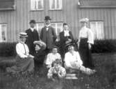 Enligt noteringar: "5 augusti 1924. Familjen Ivar Kjerrström med gäster. Andre man stående är smidesläraren Ivar Kjerrström. Andra kvinnan bland de sittande är fru Kjerrström, med sonen Stig i knät och stående bredvid sonen Curt. Stig dog endast 18 år gammal." (BJ)