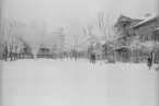 Text i guld på etuiets lock: MINNEN FRÅN GUSTAFSBERG Bilden är uppklistrad på ljusgrå papp. Stämpel på baksidan fotogtafiet: "ROB. LINDAHL LYCKORNA LJUNGSKILE" Handskriven text på baksidan fotografiet: "Bazar i Lyckorna 1901". Detta brev fanns med i etuiet med Kabinettfoton. Herr Dr. Kristiansson Vid genomgång av div. kuvert och portföljer fann jag dessa fotografier, som kanske kan vara av intresse för Museets porträtt-samling. PÅ baksidan av dem har min make identifierat en del av de avkonterfejade, som på den tiden vistades i Gustafsberg. Damernas klädedräkter med helt ansiktsflor och handskar, pojkarnas 2-hjulingar samt de unga herrarnas pampiga skägg borde kunna roa även nutida besökare. Dessutom en del fotos från Marstrand, Lysekil, Lyckorna samt några siluetter klippta i Gustafsberg. Med vänlig hälsning Ebba Wittenström. Måste få uttrycka min livliga förtjusning över den utomordentligt vackra och värdefulla tavelsamlingen i Museet. Skulle bara vilja sätta upp en ordentlig reklamaffisch i Hotellen för denna pärla i turistavseende.