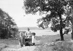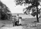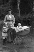 Enligt notering: "Mor och barn. Barnen på Karlslund 1921, fr.v. Folke, Linnea, Svea, Aron".
